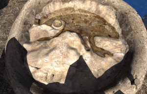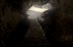 ここに至るまでに、いくつかの木の玉が発見されています。実はこの木の玉に秘められているのは、数記号と泣き声だけではありません。木の玉が埋められている場所から一歩離れて見てみます。もしくは違うアングルから見てみます。すると泣き声の主と思われる生物の形が、岩や付近の地形を利用して象られているのに気付く事でしょう。これは後々謎を解くための重要な鍵となりますので、必ず見ておきましょう。