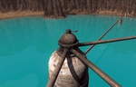 トロッコから降りて、通路を進んで梯子を降りるとこの島の中央にある湖岸へと到着します。付近を見渡すと湖中央へ伸びる橋と、円筒形の巨大ボイラーが見えます。巨大ボイラーの中へはすぐに入れないので、先に湖の中央へ伸びる橋を渡って行きましょう。 橋の突き当たりには水力装置があって、この装置は各方面へ伸びているパイプを通じ、パワーを送ることが出来ます。ここでは次の湖沿いの巨大ボイラーへパワーを送るため、バルブのレバーを右斜め下へとセットしておきます。この動力によって、巨大ボイラーの扉を開かせる事が出来るのです