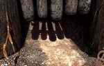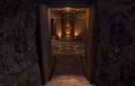 スタート地点より階段を登ると、左側にゲート・ルームがあります。入り口にあるスイッチを押すと部屋が回転するので、4回スイッチを押し、部屋を回転させて隠し通路に連結させておきます。次にゲート・ルームの裏に行くとドアの下部に怪しいナイフが刺さっているのが見えます。これをクリックするとドアの下をくぐって隠し通路に入れます。すると突き当たりの小部屋にレバーを発見できるので、これを倒しておきましょう。