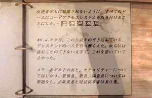 この部屋にあるゲーンの日記は非常に有益な情報なので、必ず目を通しておきましょう。内容についてはその量がかなり多いので、自分の目で確かめてください。また「ドニの色彩シンボル」は、各島のドームのマークですので要チェック。特に「リヴンの数記号」は、ゲームの中の蓋を開けるための数字(ドームコードアクセスシステム)なので、必ずメモして下さい。さらにこの数字は新規にプレイごとに変わりますので気をつけるようにしましょう。