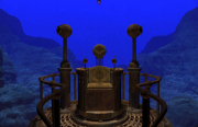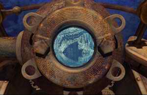 来た道に戻り、正面ドアに入ると巨大な水窓があります。窓の前の機械に座り、赤いスイッチを押します。この時左レバーを操作すると、モニターが現われます。このモニターには幽閉さえているキャサリンが映し出されます。またモニター上の右スイッチをクリックしていくと魚のシンボルが表示されます。これは後に石版を操作するためのヒントなのです。