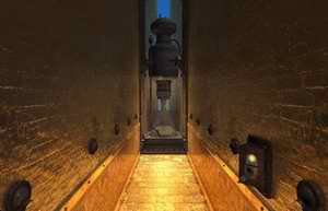 次に右側のレバーを入れてみると、シンボルが刻まれているモニターが降りてきます。外枠のレバーを回転させてスイッチを押すと、赤枠の中の島に対応したランプが点灯します。このシンボルというものは、F・M・Dに刻まれているシンボルのうち、黄色いものがその島のシンボルとなっているのです。この島に対応したシンボルの解法につながるので覚えておきましょう。