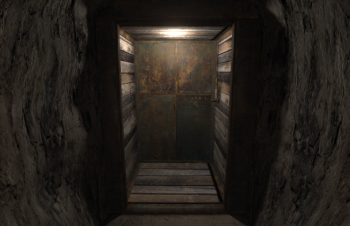 マグ・カーが到着した先に1つの通路があります。他に道はないので、通路を進んで行くと突き当たりにエレベーターがあります。これに乗り込み右側にあるハンドルを半分だけ回してみます。エレベーターが停止したところは行き止まりのようですが、左手のレバーを操作してみると正面が開いて階段が現われました。この階段を降りてみると、見覚えのある風景が広がります。