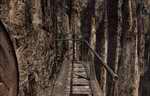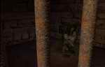 処刑台内の吊り輪につかまり、上に引き上げられると、1本の通路へと出ます。通路の先へ進むと正面に窓があります。その中を覗いてみると、民族服を着た男が捕らえられています。どうやらこの部屋は牢屋のようです。周囲を探してみると右側にスイッチがあります。このスイッチを押してみると窓を塞いでいた格子が引っ込み、牢屋の中へ入れるようになりました。