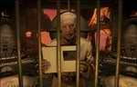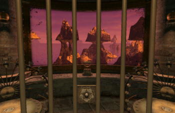 パズルを解いてS・F・M・Dを稼動させた後は、近くの島のドームへ行き、接続書へアクセスしてみましょう。すると着いた先はどこかの部屋、しかし周囲は鉄格子で囲まれていて一歩も進むことが出来ません。しかし足元に目を向けると、5つの接続書が置いてあります。他に何かないかと見渡してみると、スイッチが目に入りました。これを押して見ると...