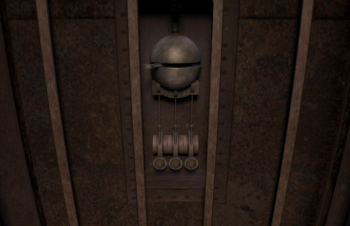音の出る装置を見ると球体の中央のレバー、その下に3つのスイッチがあります。このスイッチが音を鳴らすためのものです。とりあえずそれぞれの音を確認、そして音がわかったらスイッチをオルゴールの音通りに鳴らします。次に上にあるレバーを右へ動かしてみると鉄格子が回転します。さらに右上にある取っ手を引くとエレベーターが上がり、キャサリンが現われて、ついに彼女を救出することが出来るのです。