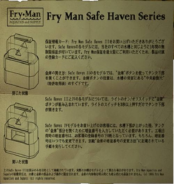 ・・・保証情報カード:Fry Man Safe Havem Vをお買い上げいただきありがとうございます。Safe Havemの各モデルには・・・