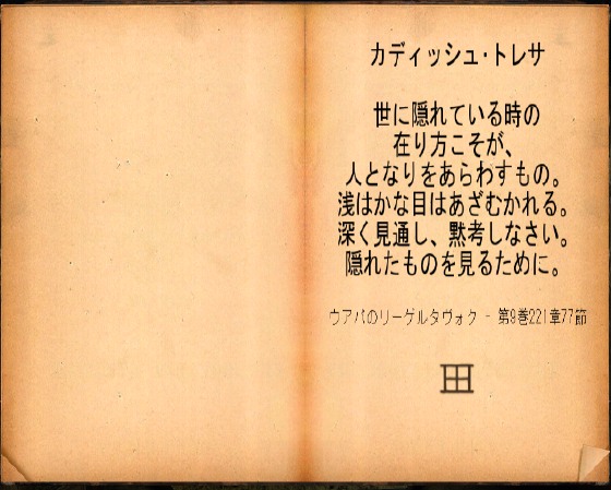 ・・・テレダーン 人の真実は闇のなかで見え始める。表面に隠された下のものを。光は、見せたいものを・・・