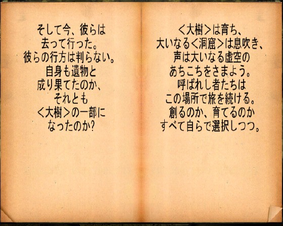 ・・・この場所に訪れる者たちがいた。<大樹>を創れると信じて。しかしでき上ったのは・・・