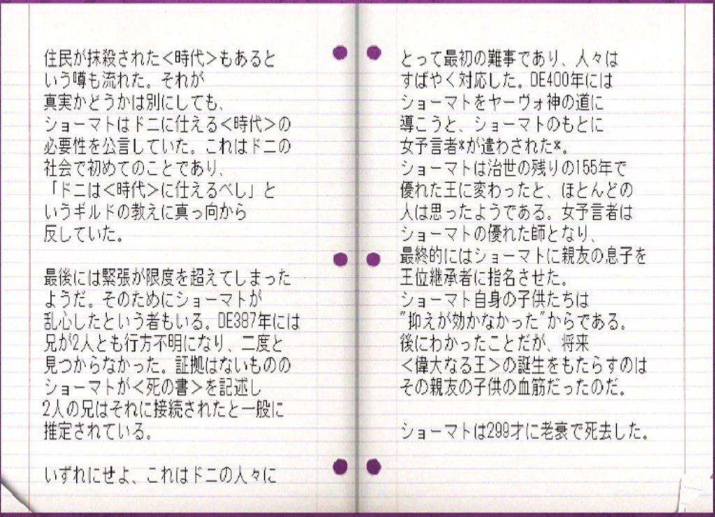 ・・・ショーマトは、ドニ時代300年に44才で即位した。戴冠式の時点までは記述者ギルドに属していた。ショーマトは戴冠式の後も・・・