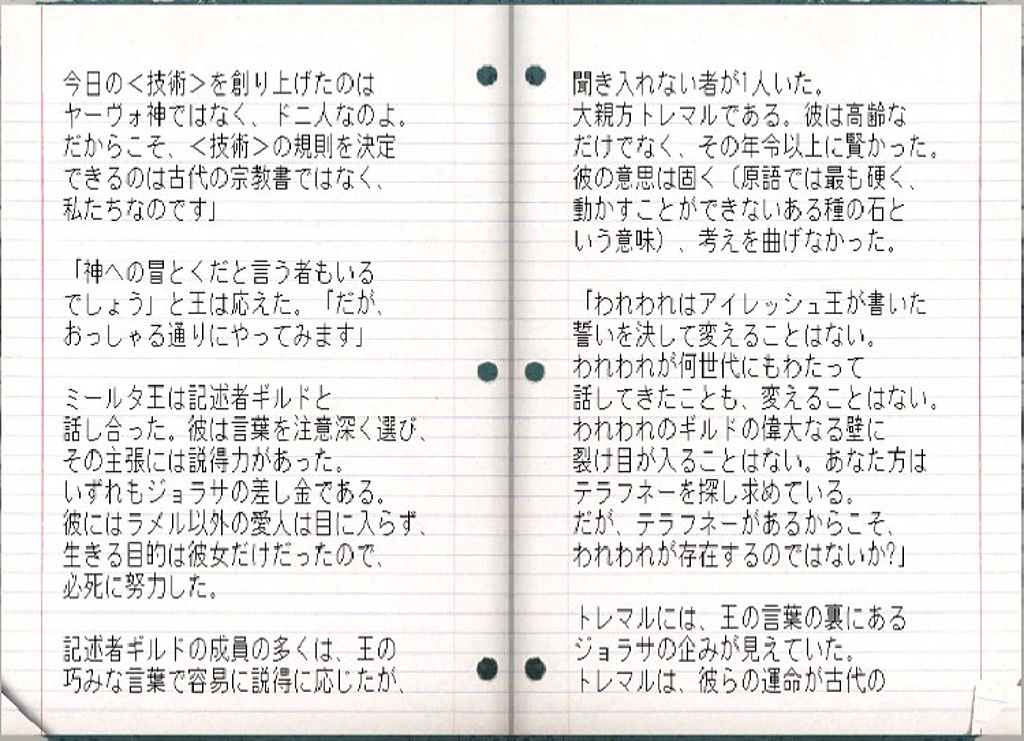 ・・・ミールタ治世の196年目のある日、母親のジョラサが彼の寝室を訪れた。ミールタの女性に対する渇望(色欲)はシティ中に・・