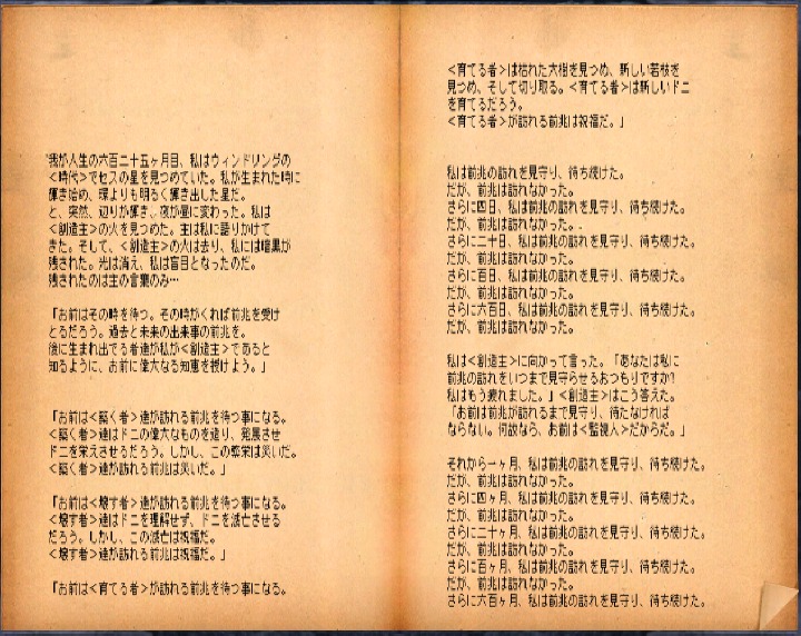 ・・・我が人生の六百二十五ヵ月目、私はウィンドリングの<時代>でセスの星を見つめていた。私が生まれた時に輝き始め・・・