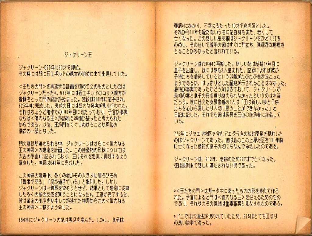 ・・・ジャクリーン-555年に80才で即位。その時には既に石工ギルドの親方の地位まで出世していた。<王たちの門>を再建・・・