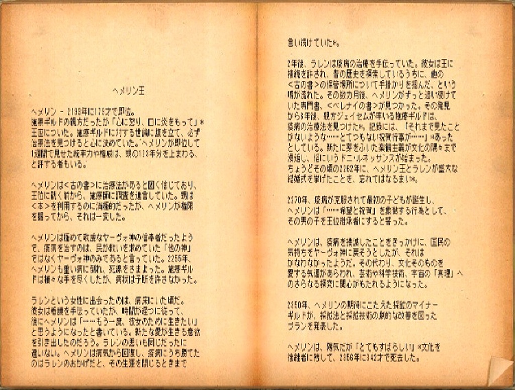 ・・・ヘネリン - 2199年に175才で即位。施療ギルドの親方だったが「心に怒り、口に炎をもって」王座についた。施療ギルドに対する・・・