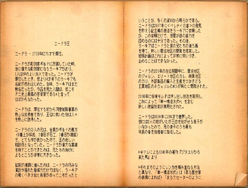 ・・・ニードラ - 2779年に75才で即位。ニードラが彫刻家ギルドに所属していた時、後に偉大な彫刻家になるラーキアがおり・・・