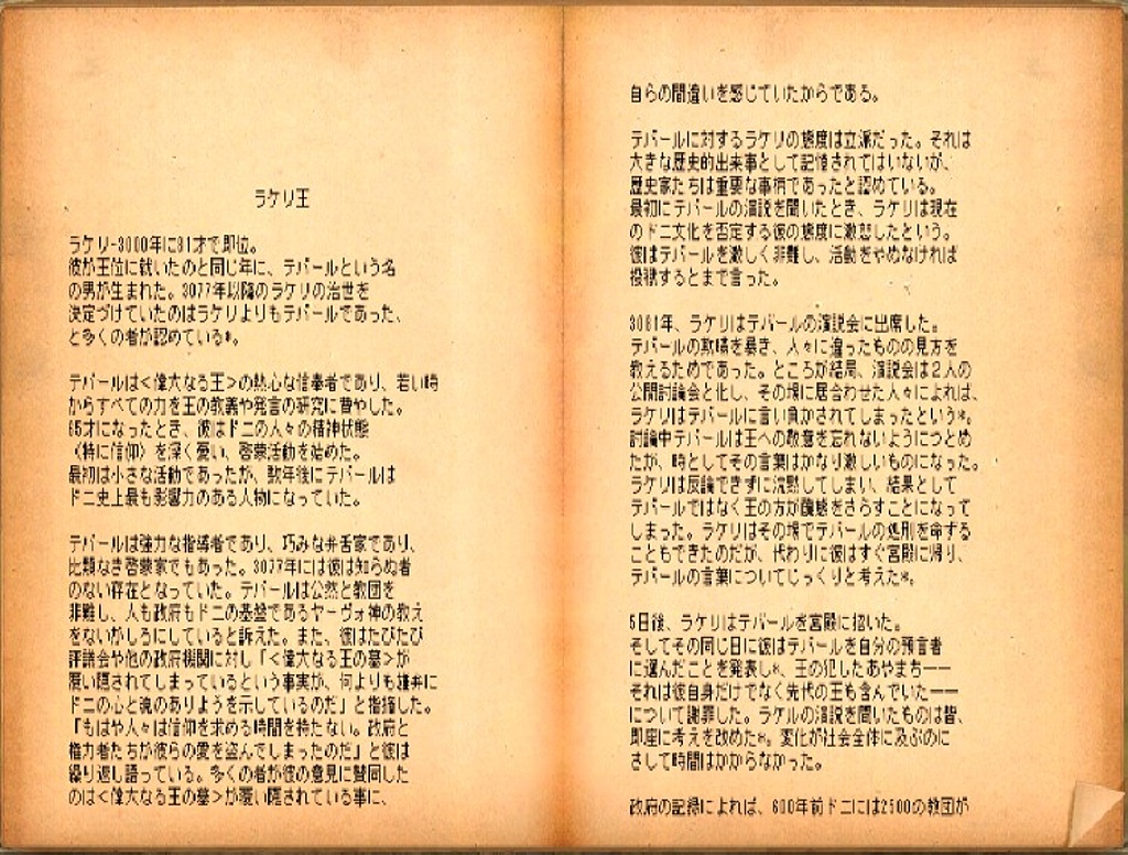 ・・・ラケリ - 3000年に81才で即位。彼が王位に就いたのと同じ年に、テパールという名の男が生まれた。3077年以降のラケリ・・・