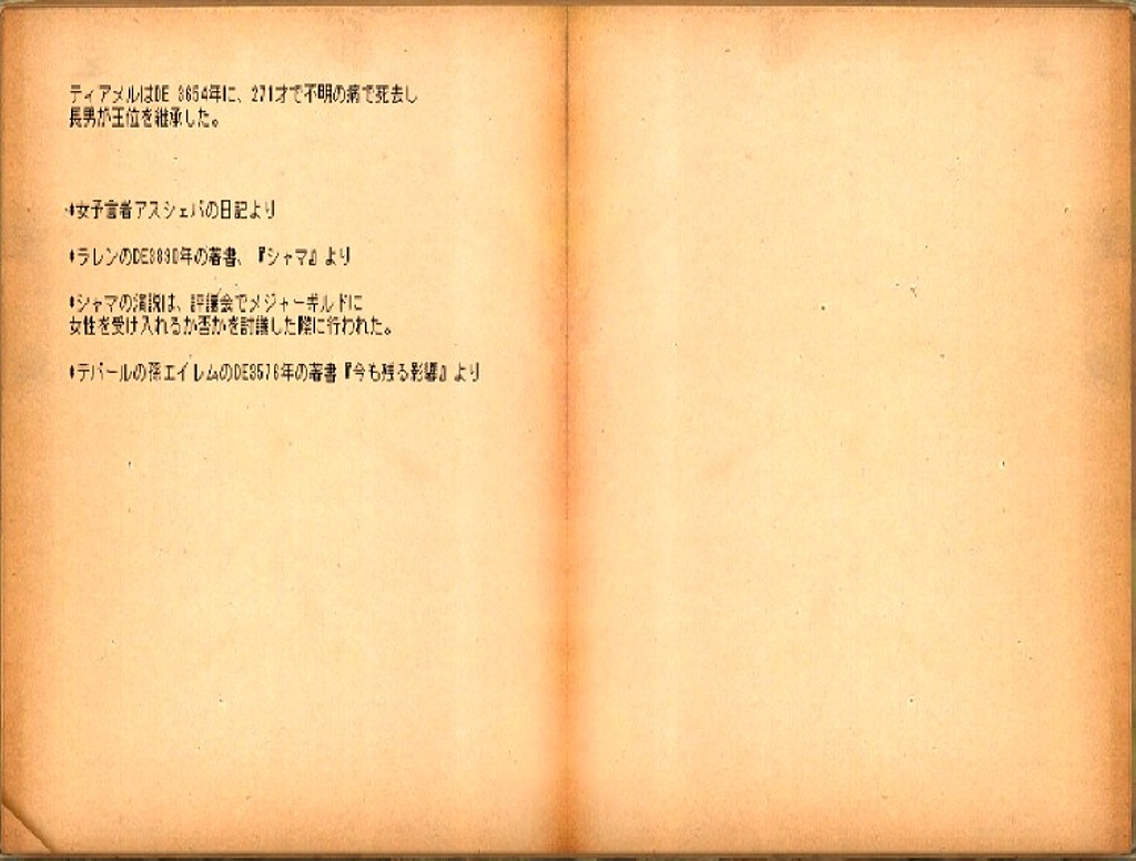 ・・・ティアメル - DE3422年に39歳で即位。彼は父親同様、個人の快楽を求める男であった。父親との違いは、それを国民に・・・