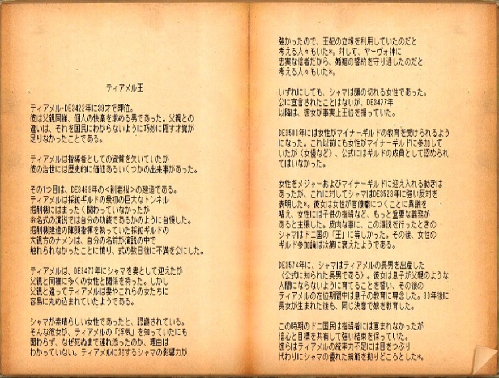 ・・・ティアメル - DE3422年に39歳で即位。彼は父親同様、個人の快楽を求める男であった。父親との違いは、それを国民に・・・