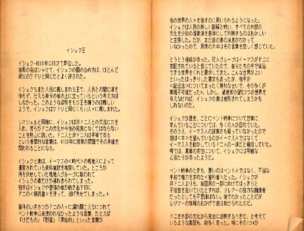 ・・・イシェク - 4083年に85才で即位した。祖母の名はシャマで、イシェクの国の治め方は、ほとんど叔父のケドリと同じだと・・・