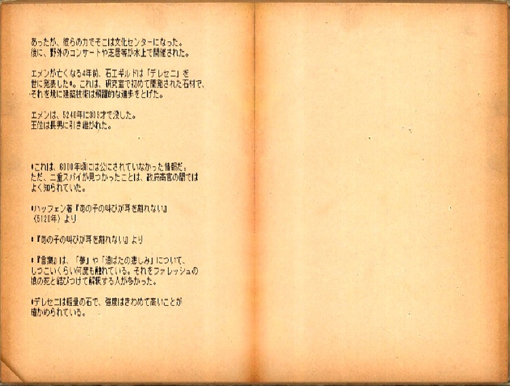 ・・・エメン - 5081年、150才で即位。即位から2年後、レリマーで活動していた2人が謎の失踪をして姿を圭太。政府の主要メンバー・・・