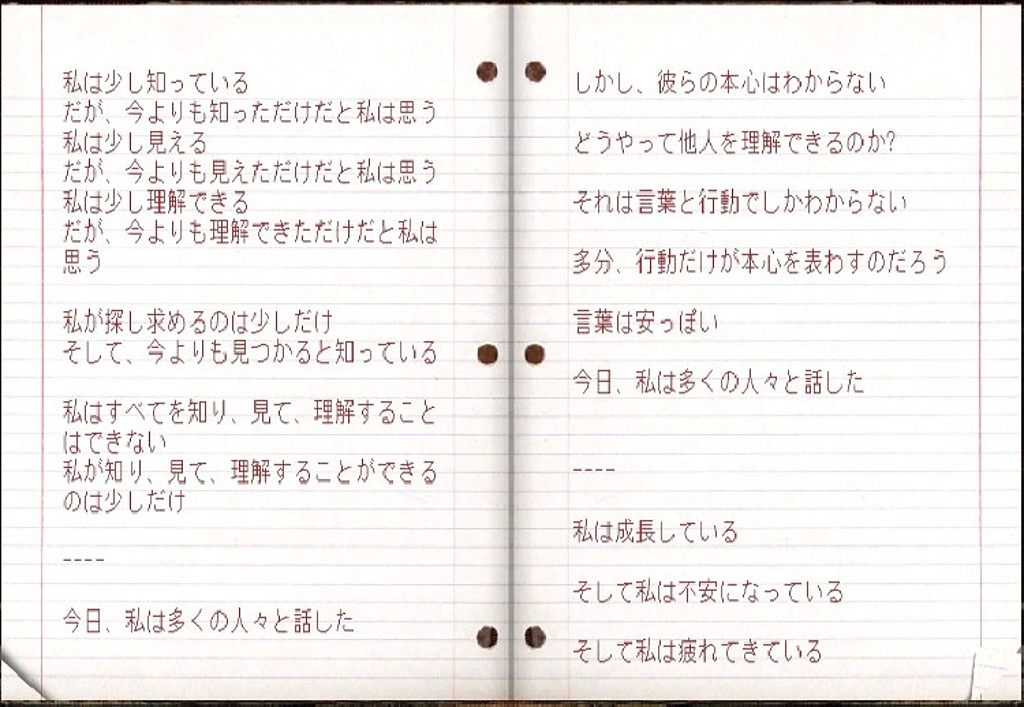 ・・・自分を見失った後で、再びここにいるというのは奇妙に感じる。自分には場違いな気もするが、何かのためにここにいるような・・・