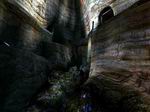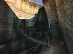 ハシゴを降りて裂け目に降りたら実験室を目指して奥のブリッジを渡ります ;ブリッジは折れて落ちてしまいます。