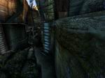 寝室Aの前を通り過ぎて進み下に降りると、3本の板きれが渡してある小さな橋があります。それを渡り左に進むと落ちているブリッジがあるので、上に登ります。そこが実験室です。実験室にはイメージャーなどがありますが、今は動力が供給されていないので、動きません。