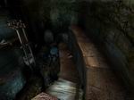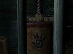 外に出たら、右側にあるブリッジを渡り貯蔵庫に向かいます。(ブリッジの大きな隙間は「スペースキー」を使いジャンプします)そして渡ったら右側にある井戸まで行きます。その足元にはベダルがありますので、ペダルを踏んでみましょう。桶が下へ降りていくのが判ります。下に降りてその桶を見てみると、6枚目の旅の布{ジャーニークロス}が貼り付けられています。