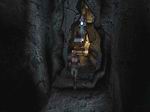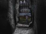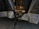 セカンドフロアに着いたら崩れている壁から通路に出ます。すると目の前に大きな亀裂があります。そして、その奥には凸凹の壁が回転しているのが見えます。その回転する壁を観ていると一部に大きな穴が開いているのが見えますが、なかなかうまいこと中に入れません。大きな穴が来る前に、一度だけ壁が欠けている場所が通り過ぎますので、そこが見えたら飛び込むと丁度良いです。穴に飛び込んだ後、暫くすると部屋が見える時がありますので、タイミングをみて飛び降ります。