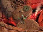 先程の行き止まりにあったスチームホールの内の1つのキャップを外します。そして最初の旅の布(ジャーニークロス)の真下にあるスチームホールをクローズします。先ほど坂を上って見た崖の下の岩棚に飛び降ります。飛び降りる場所を慎重に検討してから、なるべくゆっくりと足を踏み出します。あまり勢いを付けると溶岩へ飛び込んでしまいます。