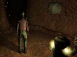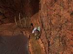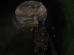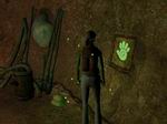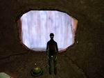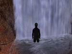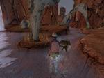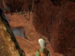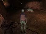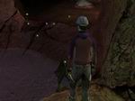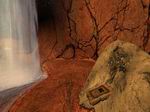 滝の奥にある洞窟の中に入ります。そして鼓のような形をした木組みの籠がありますので、それを外までキックして運び出します。そしてそれを洞窟とその手前の滝つぼの端に設置します。ちゃんと歩いて渡れるかどうかをチェックし、位置を微調整しておきます。エデル・ケモにいる光虫を連れてきて暗い洞窟の通路に入るためには、どうしても必須事項なのです。この光虫は「水」をとても嫌いますし、ジャンプも1回しか許されません。(ちなみに、この光虫はレルトに持って帰る事も出来ます。そしてレルトで飛び廻るようになります)