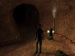 光虫を連れてエデル・ギラに来ました。まず接続書が置いてある近くの川はジャンプして飛び越えます。次に、すでに設置してある滝つぼの近くの木組みの上を慎重に渡り洞窟の中に入ります。洞窟の中に入ったら奥の通路を進みます。すると小さな部屋に行き当たりますので、中央にあるライトのボタンを押して照明をつけましょう。