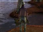 壁際にあるレバーを操作すると扉が開きます。また別の洞窟を通り抜けて滝の外に出ます。外に出ると隣にもう1つ洞窟があります。その洞窟の中にある鼓型の木組みを外へ運び出して下に落とします。落としたら自分も下に飛び降ります。下に降りたら木組みを最初にジャンプした川の隙間までキックして運び、そこに設置します。位置の微調整が終わったら、またエデル・ケーモへ行き光虫を連れてきます。