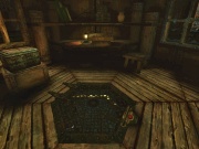 テレダーンの接続書を使って到着した所は、とても小さいキャビンでした。そのキャビンの床を見るとハッチが見えます。ですがロックしてあって開けられませんし下にも降りられないようです。