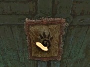 キャビンを出てから、そのキャビンの周りを歩いて観ると壁に1枚目の旅の布(ジャーニークロス)を見つけることが出来ます。(キャビンの真後ろにあります)