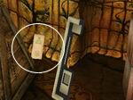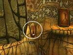 右側には水槽がありますが、その左下には「イーシャページ」が落ちています。その「イーシャページ」をクリックしてから、さらに「イーシャページ」のシンボルの部分をクリックすると、レルトの書に加わります。水槽の上部の黒いボックスにある赤いボタンを数秒ほどクリックすると、水槽の台の一部が下にスライドし別の時代への接続書が出現します。