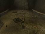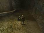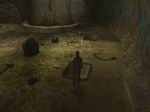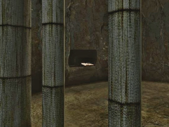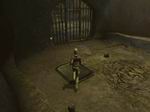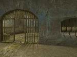 暗い通路を進むと途中で通路の外に出られる穴が右側にあります。階段を登った所が奴隷の牢獄です。入り口の壁に4枚目の旅の布(ジャーニークロス)があります。部屋には骨や石、木組みの籠などが散乱しています。それと床には金属プレートが7つあります。踏むと少し下がりますので、重量に反応するプレッシャープレートのようです。部屋は格子の扉で仕切られています。