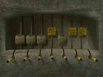 または、最初の格子扉を通過した後、札のところに行って左から2番目の札を下にします。すると最初の格子扉が閉まって、2つ目の扉が開きます。
