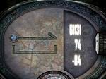 次に向かいの装置(右側手前)をクリックします。こちらの装置は「高低差表示」を有効にするための装置です。今までの装置と同様に、左側半分には水平の線と上下の矢印のシンボル、右側半分には3つの数字が描かれています。「角度表示」から、目的のマーカーはベヴィンにある事が分かります。