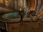 レズィーロに戻ったら、フロアにある「アップロードデバイス」に登録します。それからキャリブレーションセンターに向かいます。最初は開かなかった金属製の扉が「KI」に反応して開くようになります。そして扉の奥へ進んでいくと、小さな池の周りに4つの装置が設置されています。その4つの装置の内、左側手前の装置をクリックして下さい。