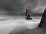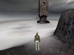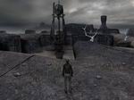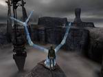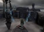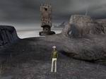 島から接続してみると、あのアーノネイにある寺院に戻ります。そこにある接続書でまたアーノネイに接続します。すると今度は先ほどのアーノネイとは違うアーノネイのようです。水もなく、濃霧と荒れ果てた大地、雷まで鳴っています。