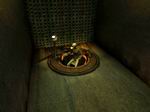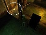 通路を進み通路の脇にあるハシゴを降りると、椅子が見えます。その椅子の手前の左側にはシェルクロスがあるので触れておきます。椅子をクリックして椅子に座ると自動的に椅子が下に降りて行きます。