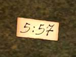ゴンドラを降りて進むと小部屋に出ます。その右側には刺繍入りのクロスがあり、そのクロスには聖域のシンボルがあります。そしてその左には{5:57}というサインがあります。