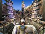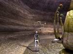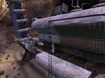 行き止まりにはハーベスターのターミナルがあって、ハーベスターが止まっています。右側にはしごがあるので上に上がり左に行くと操作パネルがあります。パネルの中央にあるスライダーを上に上げて、右のレバーを引くとハーベスターが動き出します。そのままハーベスターでコンビナートまで行きましょう。