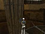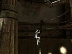 ハーベスターが中に入ったらレバーを引いてから、すぐに急いでハーベスターから離れましょう。ハーベスターはゆっくりと外に出て行きます。ここはサイロAのプラットフォームです。左に行くと柱にシェルクロスがあります。そのまま鉄の通路を進むと左に外への階段が見えます。