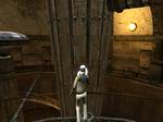 外に出てみると通路が途中で途切れていて先に進めないようです。プラットフォームまで戻ってプラットフォームからハシゴで下に降ります。出口が見えますので先に進みます。