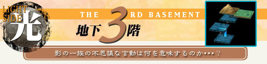 ここまで順調に冒険を進め、地下3階に辿り着いたポルックス。影の一族の本拠地にかなり近づいたためか、敵の数もぐんと増えてきた。まずは、降りてすぐに骸骨男カトラと馬男スタリオンに遭遇する。ポルックスを見て、何事かをささやきあう2人。ポルックスはそんな様子に苛立ち、挑発してみる。 しかし、彼らは何か理由があるのか、ポルックスとの闘いを避けるばかり・・・・・・ 敵と闘わずして進むリゲルやアルゴとは対照的に、現れる敵を全てなぎ倒しながら進んでいくポルッスク。しかし、3人とも「動く床」のある部屋では立ち往生することになる。 試行錯誤の末、ようやく脱出することが出来たポルックスが、この奇妙な床を操作する部屋で出会ったのは、またもニーナだった。そこで、ポルックスは地下2階で拾った彼女のペンダントを返そうとするが、ニーナは彼を激しく拒絶する。