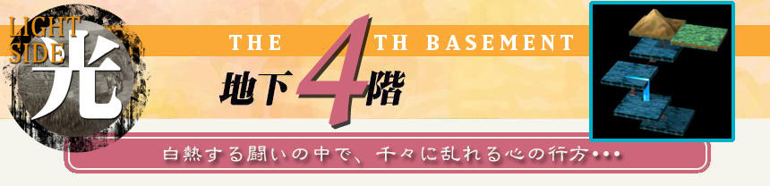 数々の激戦に耐えてきたポルックスにとっても、この地下4階は苦難の連続となる。まず、女剣士シャロンとの闘いに勝つものの、彼女はポルックスの顔を見て何かを思い出したようだ。しかし、その理由が判らないポルックス。 さらには、今まで闘いを避けるように姿を消し続けていた、馬男スタリオンとも、ついに刃を交えることとなる。