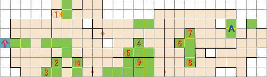 これでAの扉の鍵が解除されるようになる。そして、地点⑧から地点⑨に跳んで、戻ってくるようにしよう。