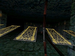 の2枚の石板のかけらを手に入れるためには、地点Cから地点Dに転送されなければならない。その地点Cの転送装置を使うためには、まず防具屋に入ること。防具屋の奥の壁が隠し通路になっているのだ。